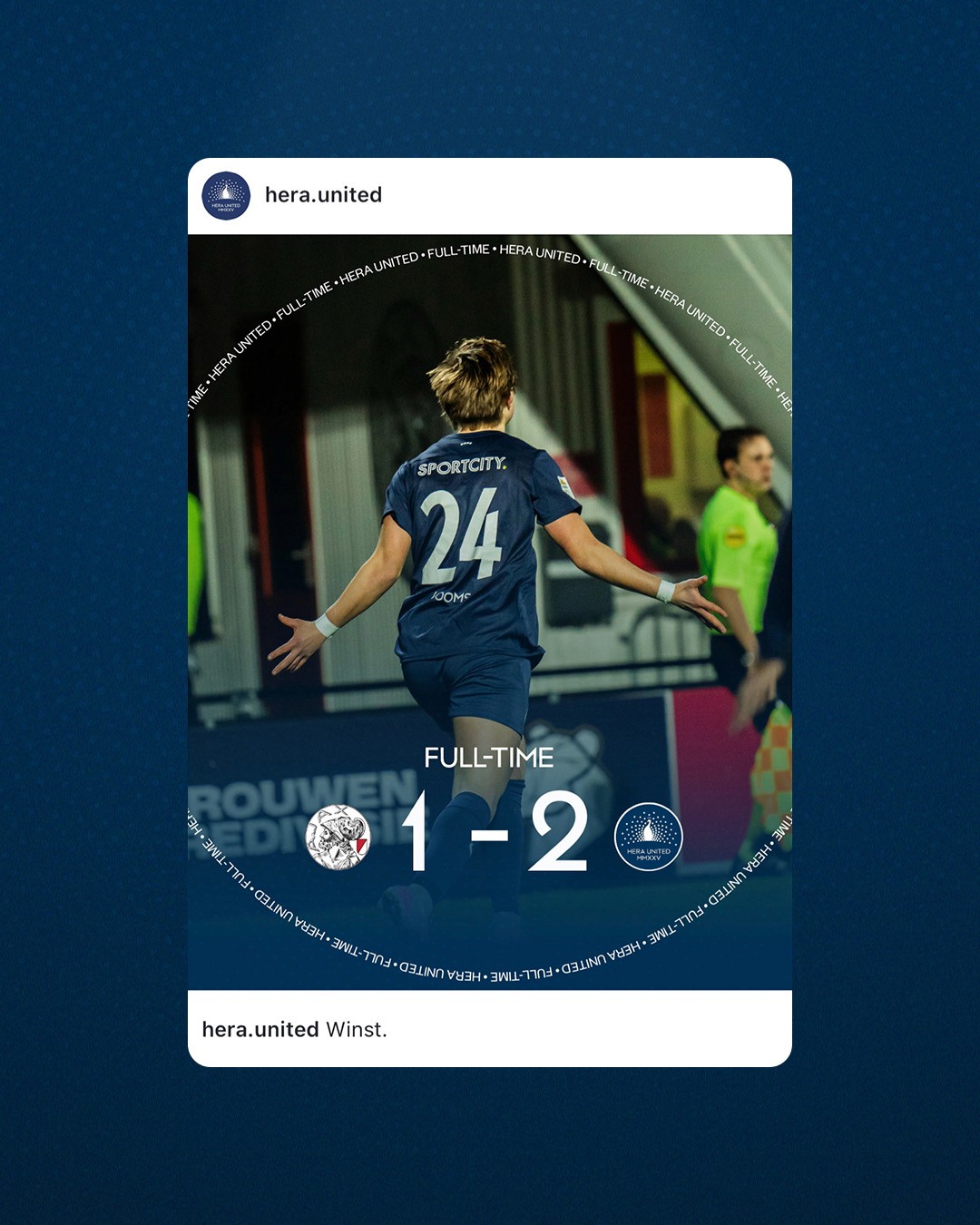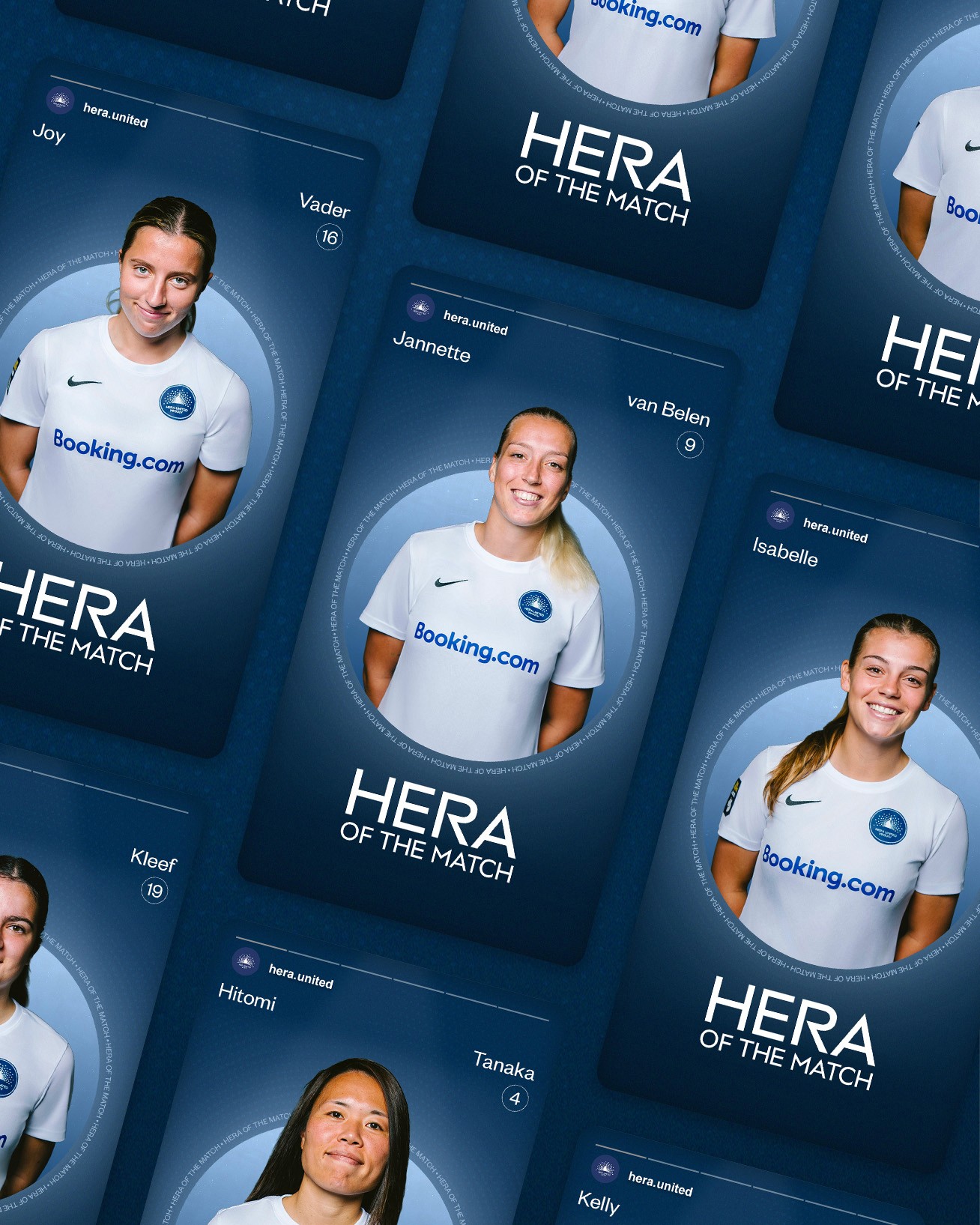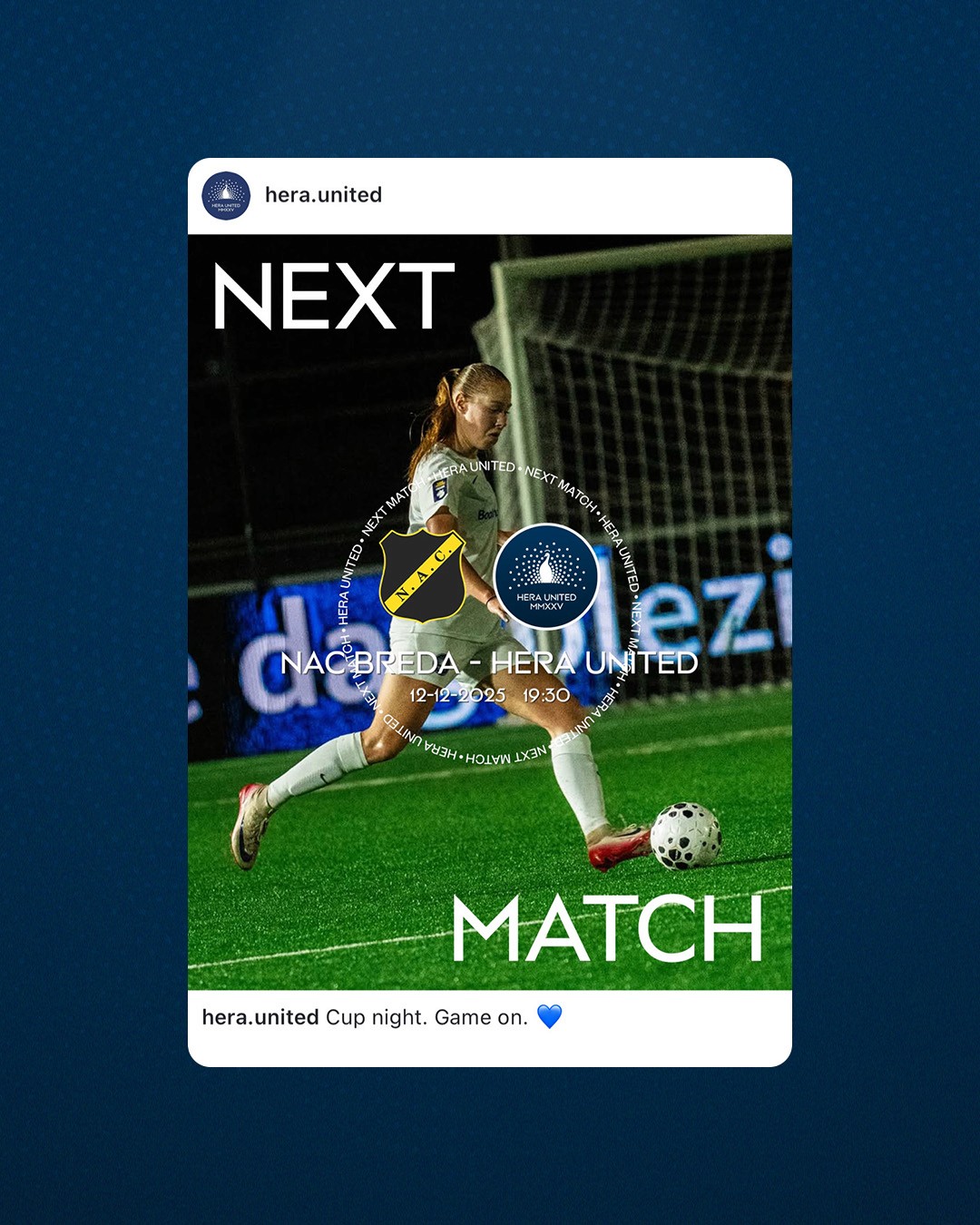 HERA United is the first independent professional women’s football club in the Netherlands. For this project, I developed a social media template system that translates their mission and core values into a strong visual language, moving beyond standard match graphics to create a distinctive and player-focused identity.