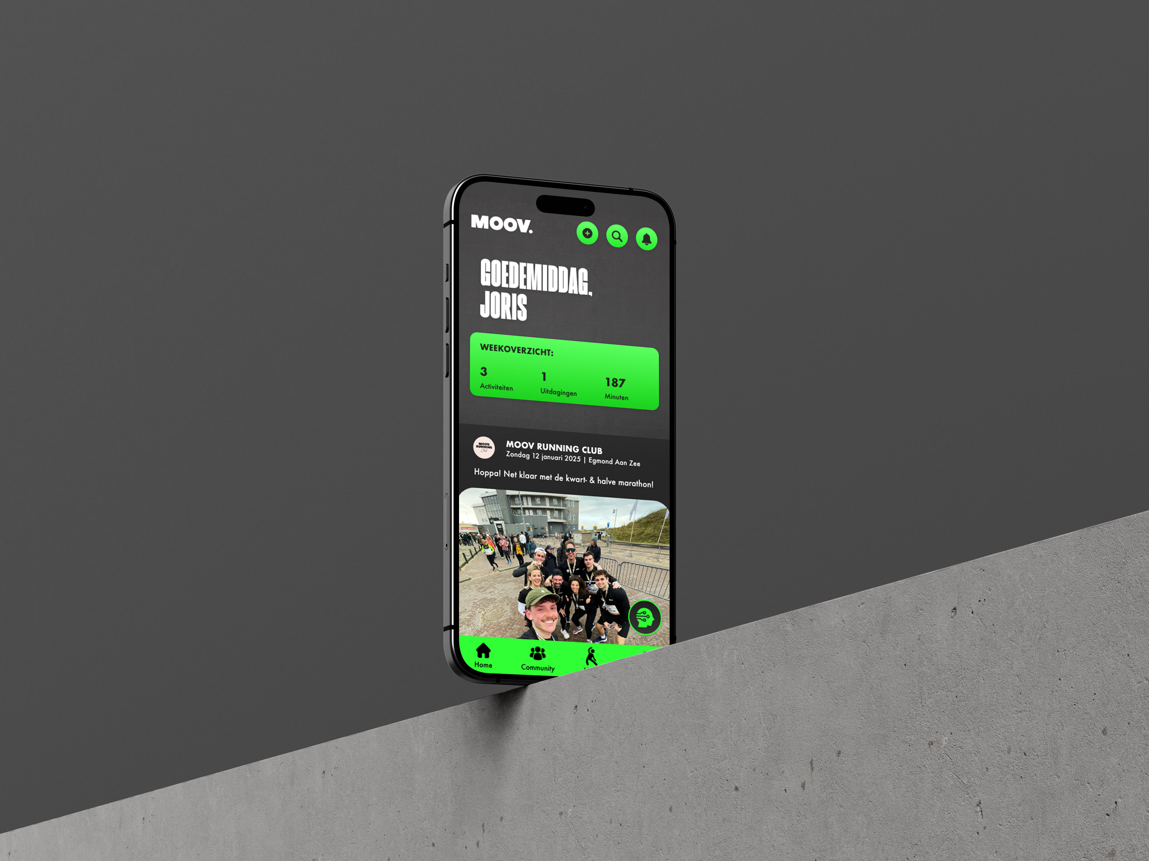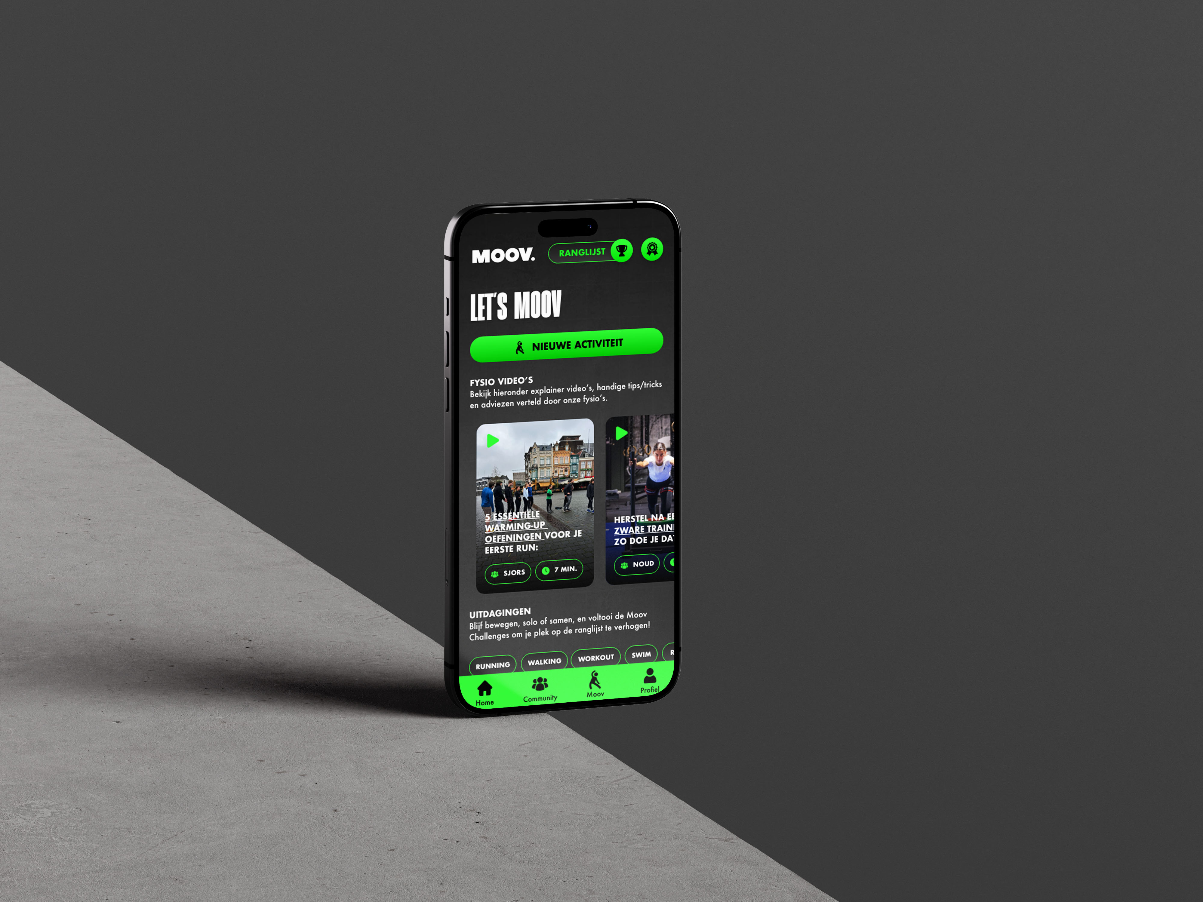 Fysio Moov is an innovative Dutch sports physiotherapy clinic focused on helping athletes move and perform better. For my graduation project, I developed a community-focused concept that included launching the Moov Running Club and designing a digital app platform to strengthen brand awareness and connect athletes nationwide.